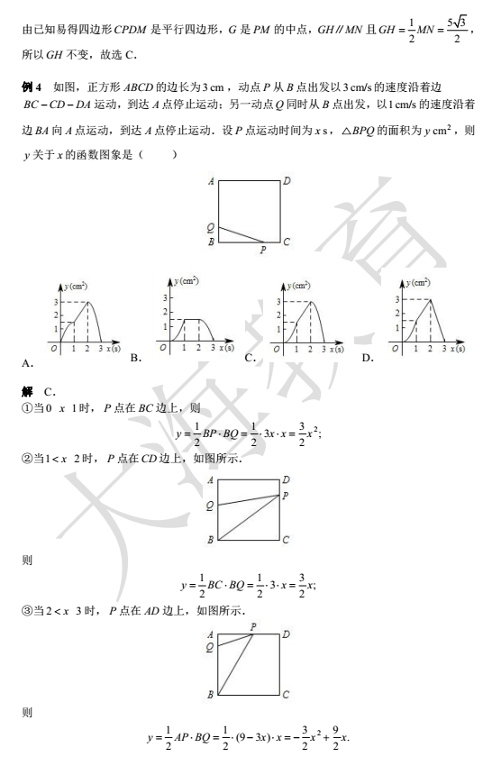 中考数学考点名师精解:几何运动产生的函数关系问题(4)