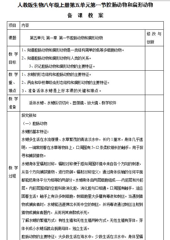 人教版八年级上生物第五单元1.1腔肠动物和扁形动物(下载版)如下: