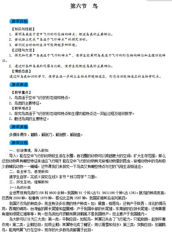 人教版八年级上生物第五单元1.6鸟(图片版)如下: