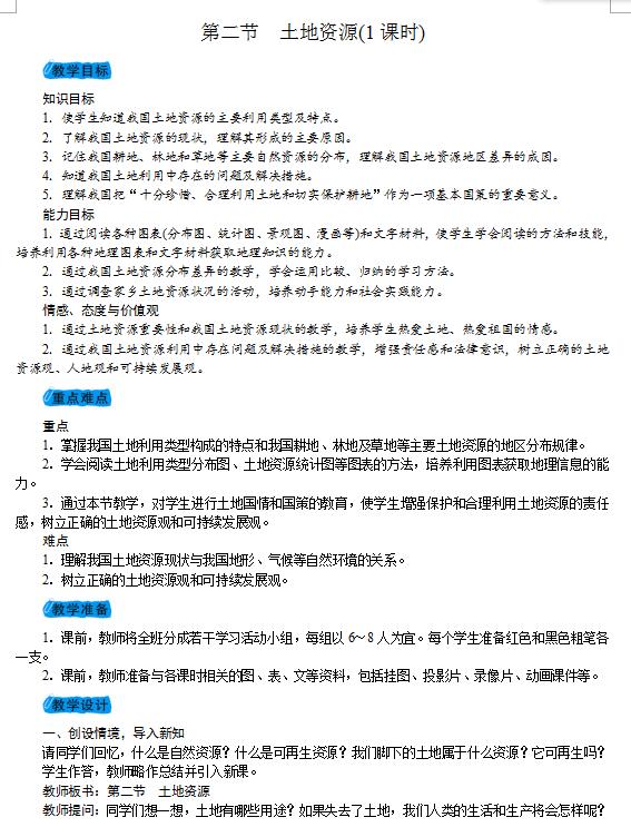 人教版八年级上地理3.2土地资源(下载版)如下: