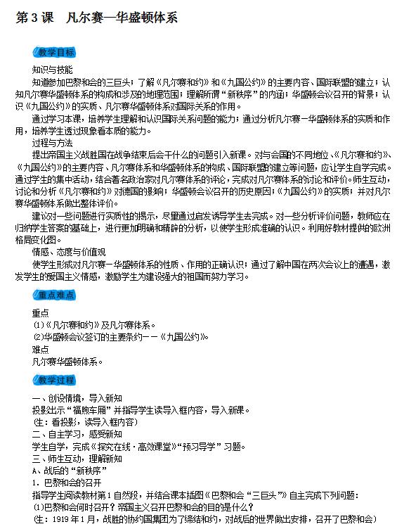 人教版九年级下历史第3课凡尔赛—华盛顿体系(下载版)如下: