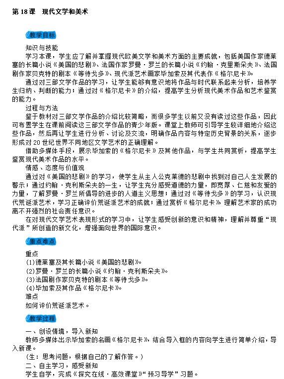 人教版九年级下历史第18课现代文学和美术(图片版)如下: