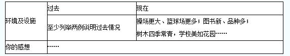 假设某美国教育代表团将来你校参观访问,请你根据下表提示的信息,用英语向外宾简单介绍学校近年来所发生的变化,并谈谈你的感想。