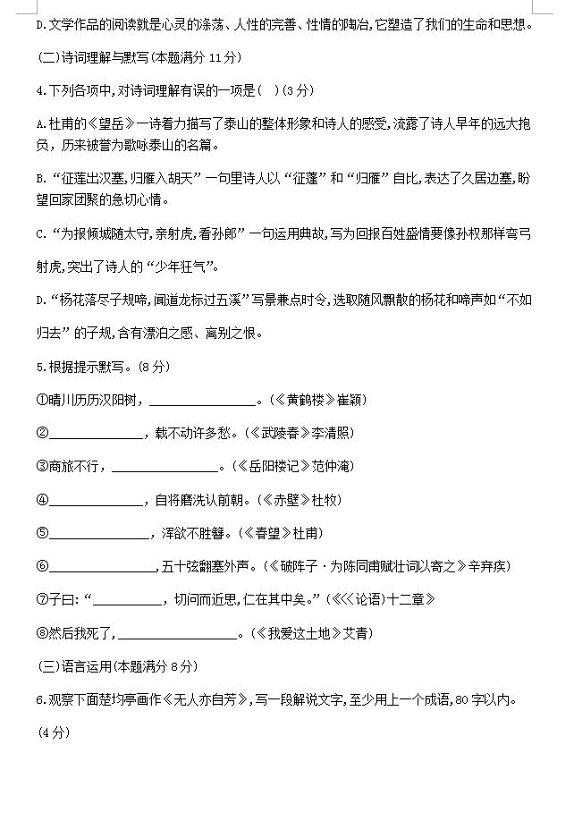 2018山东青岛市南九年级下第二次模拟语文试题(图片版)(2)