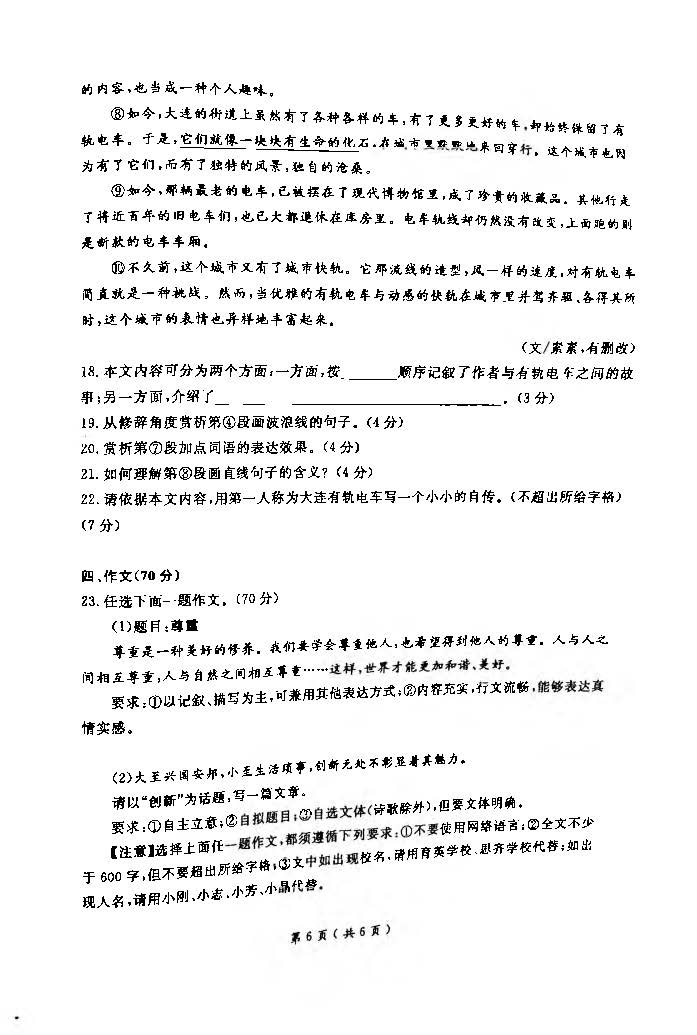 2018辽宁大连初中毕业升学模拟考试(一)语文试题(图片版)(6)