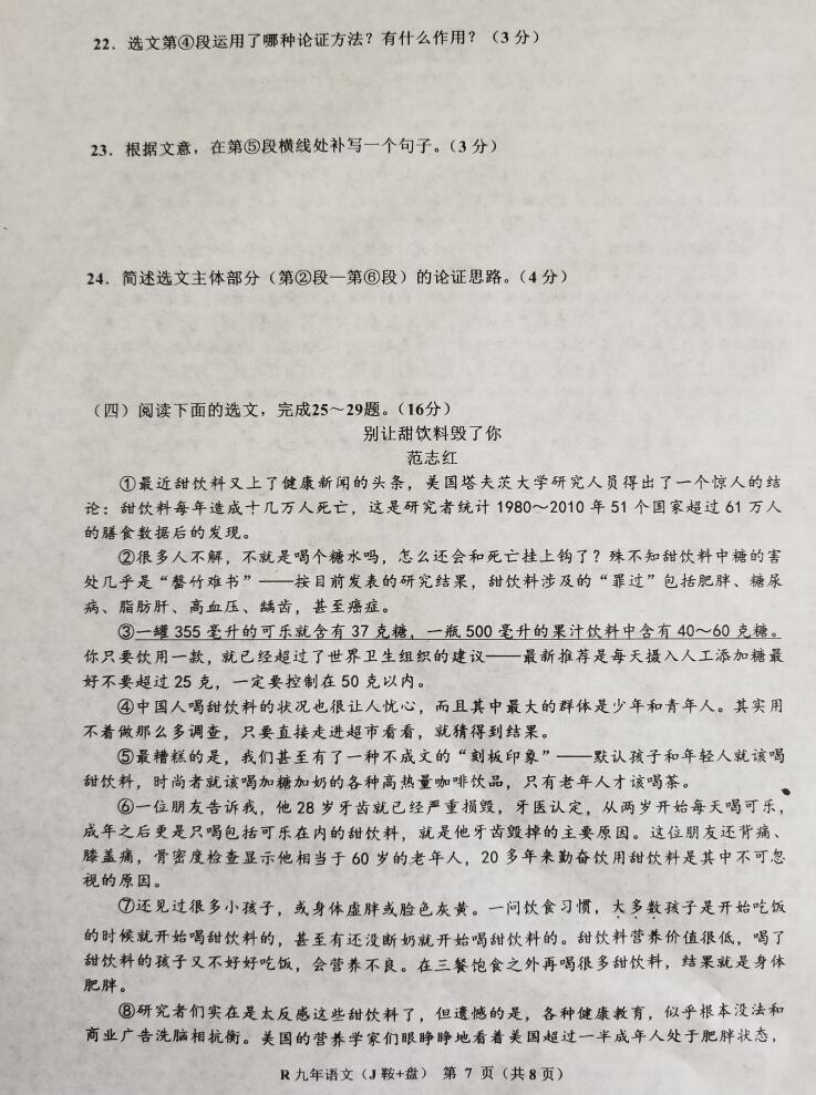 2018辽宁锦州市九年级语文质量检测(一)(图片版)(7)