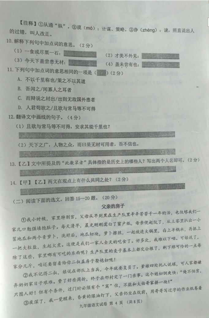 2018辽宁锦州市九年级语文质量检测(二)(图片版)(4)