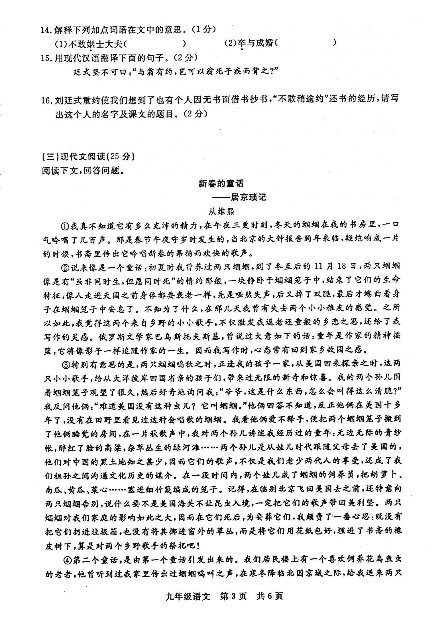 2018吉林长春绿园九年级第二次模拟测试语文试题(图片版)(3)