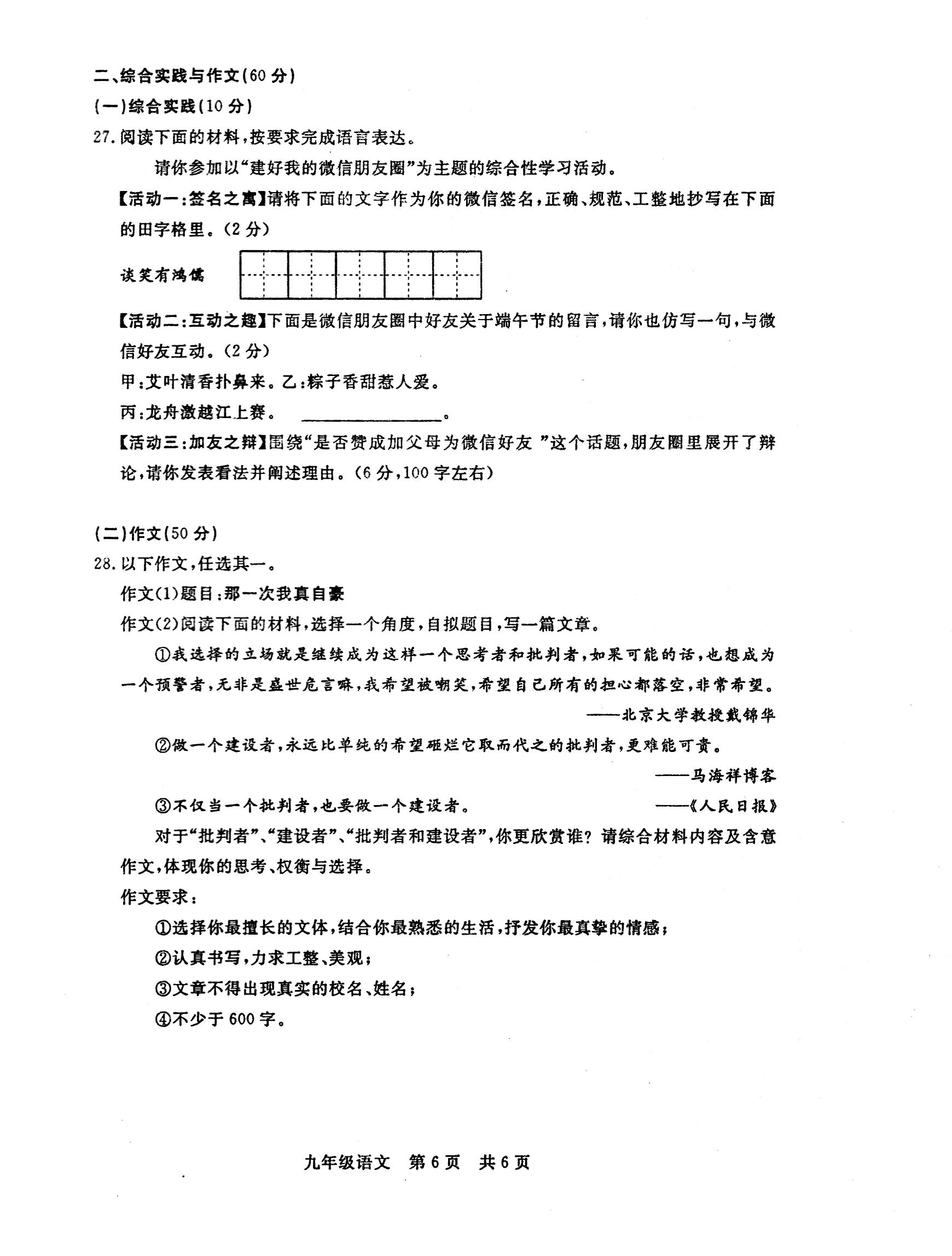 中考答题技巧