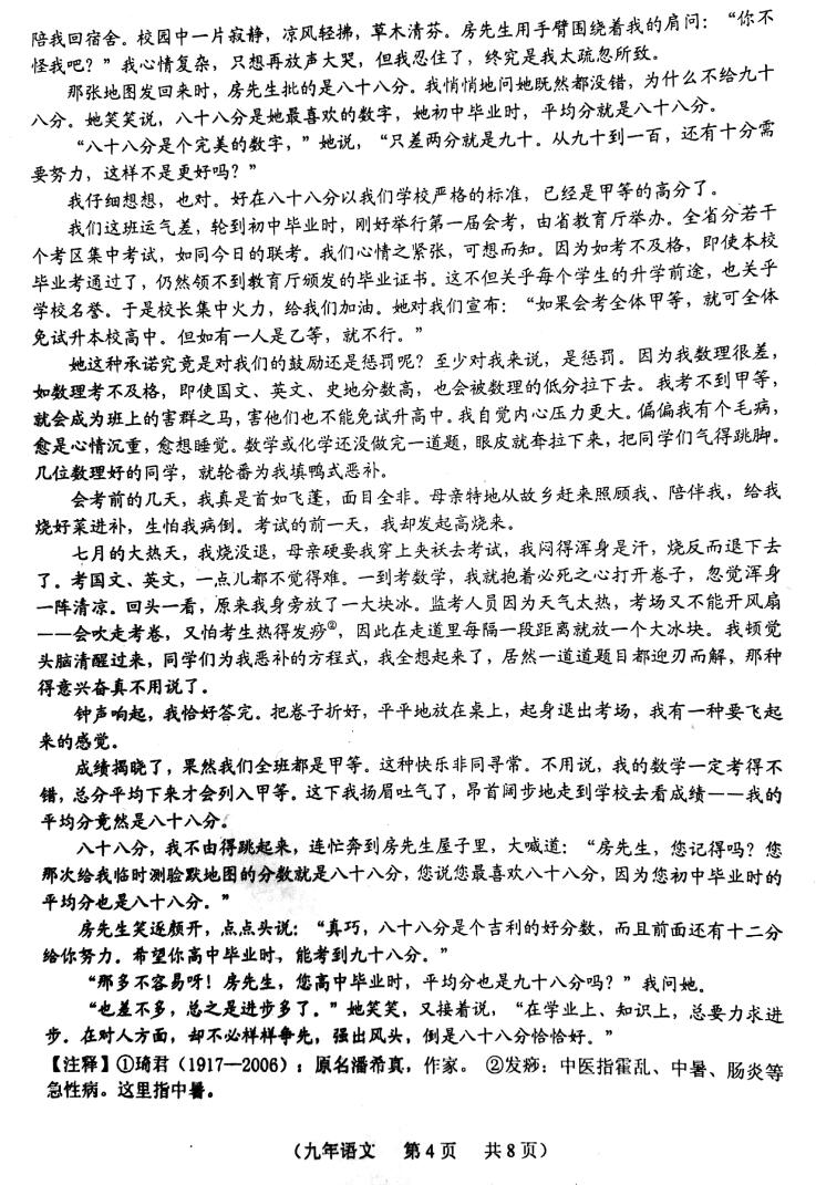 2018吉林长春朝阳九年级下第二次模拟考试语文试题(图片版)(4)