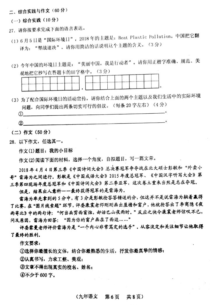 中考答题技巧
