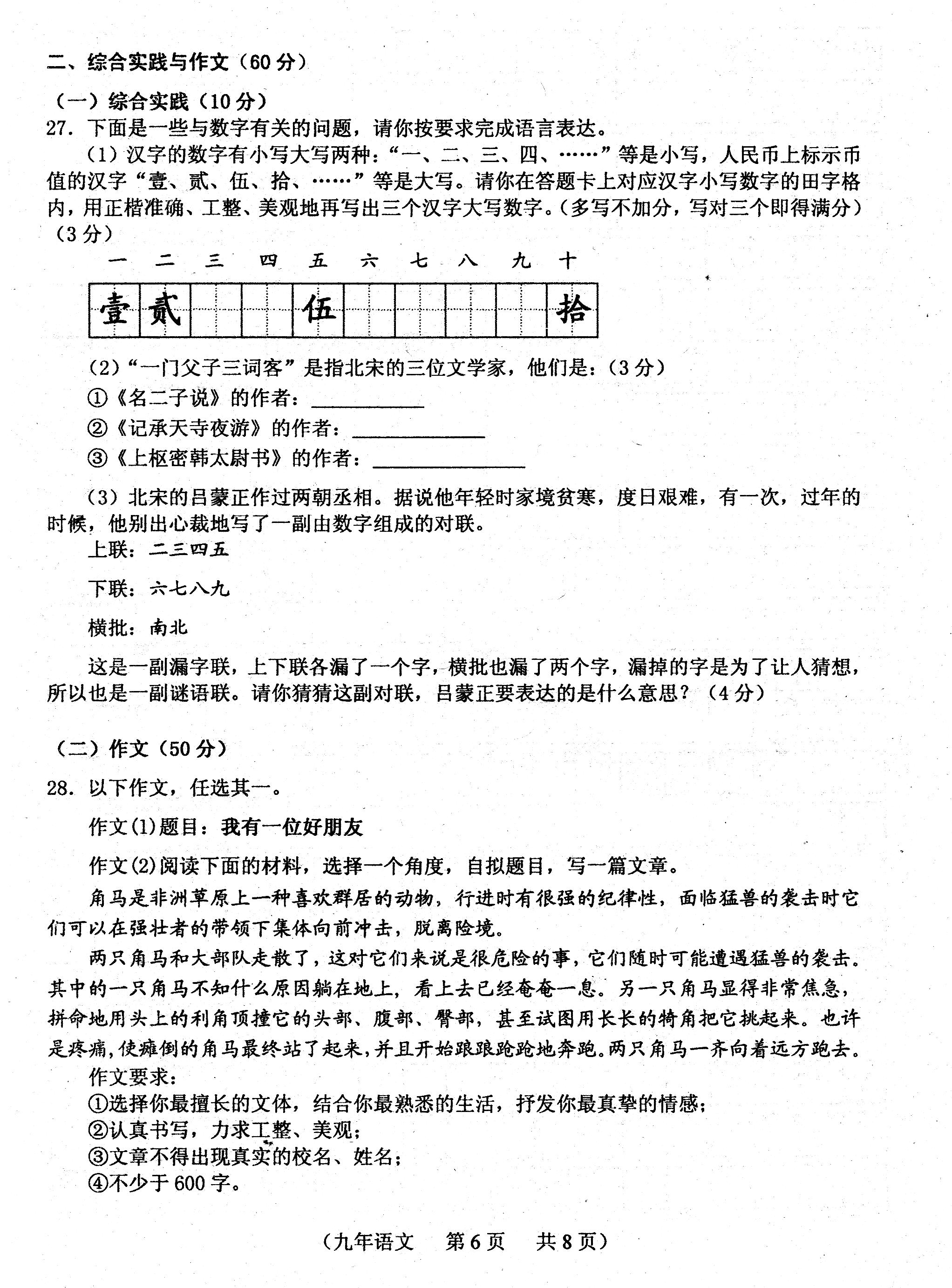 中考答题技巧