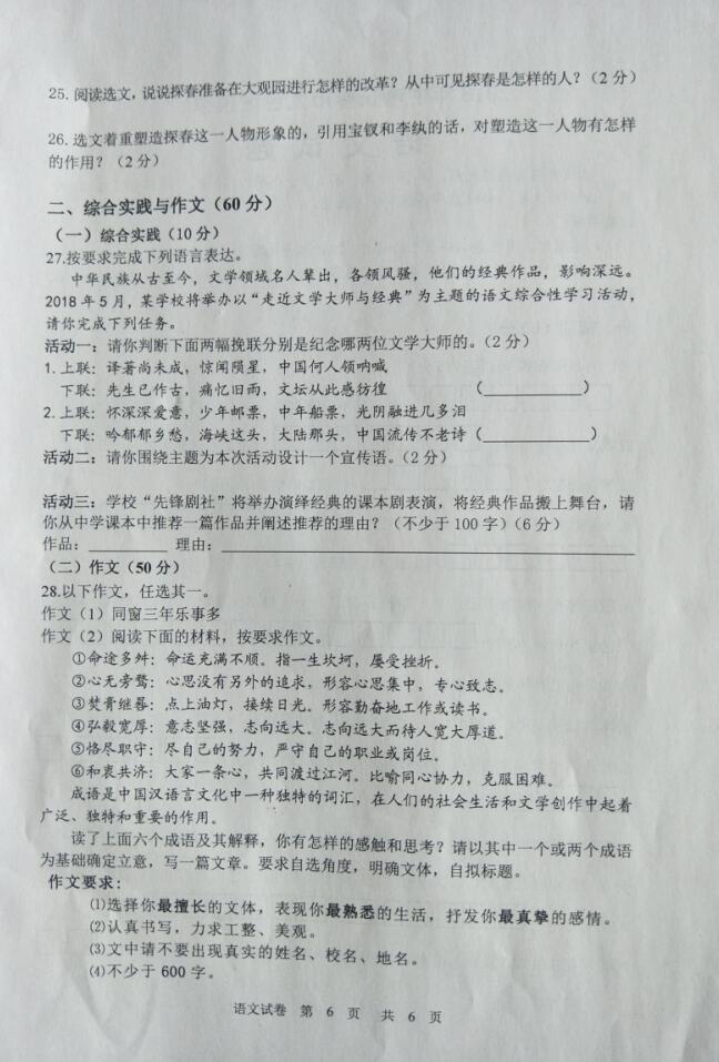 2018吉林长春九台第一次模拟考试语文试题(图片版)(6)