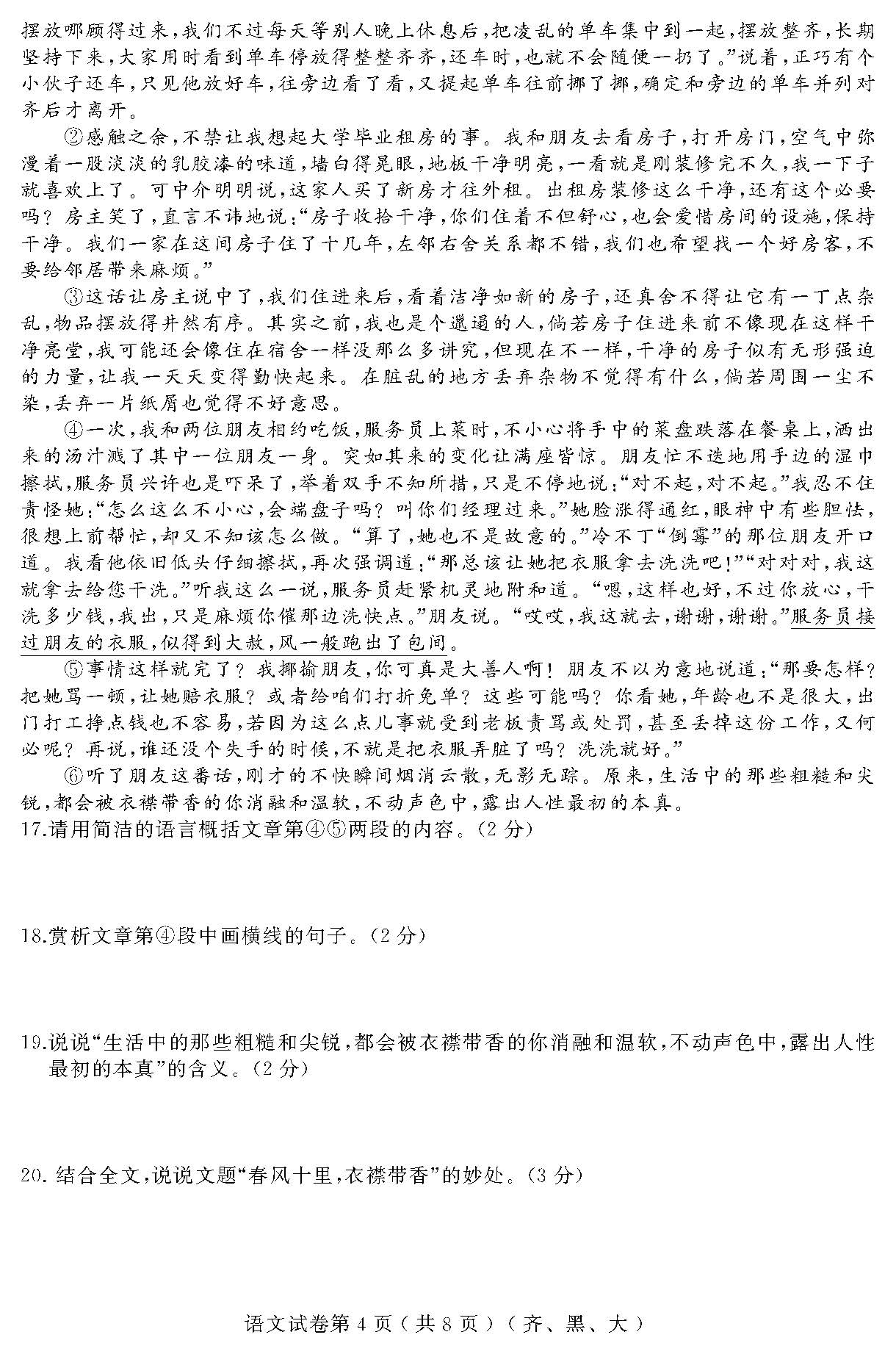 2018黑龙江齐黑地区九年级升学模拟大考卷(六)语文试题(图片版)(4)