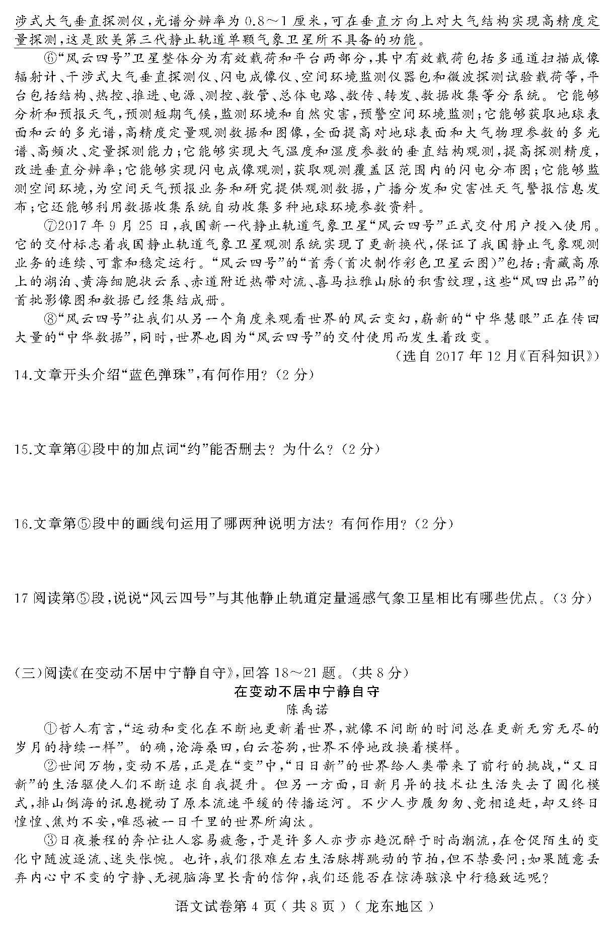 2018黑龙江龙东地区升学模拟大考卷(六)语文试题(图片版)(4)