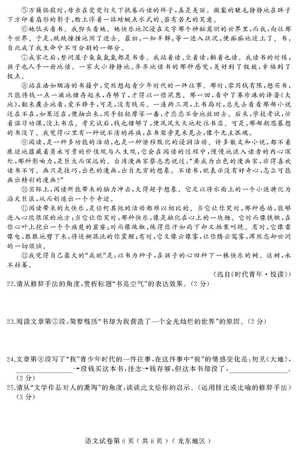 2018黑龙江龙东地区升学模拟大考卷(三)语文试题(图片版)(6)
