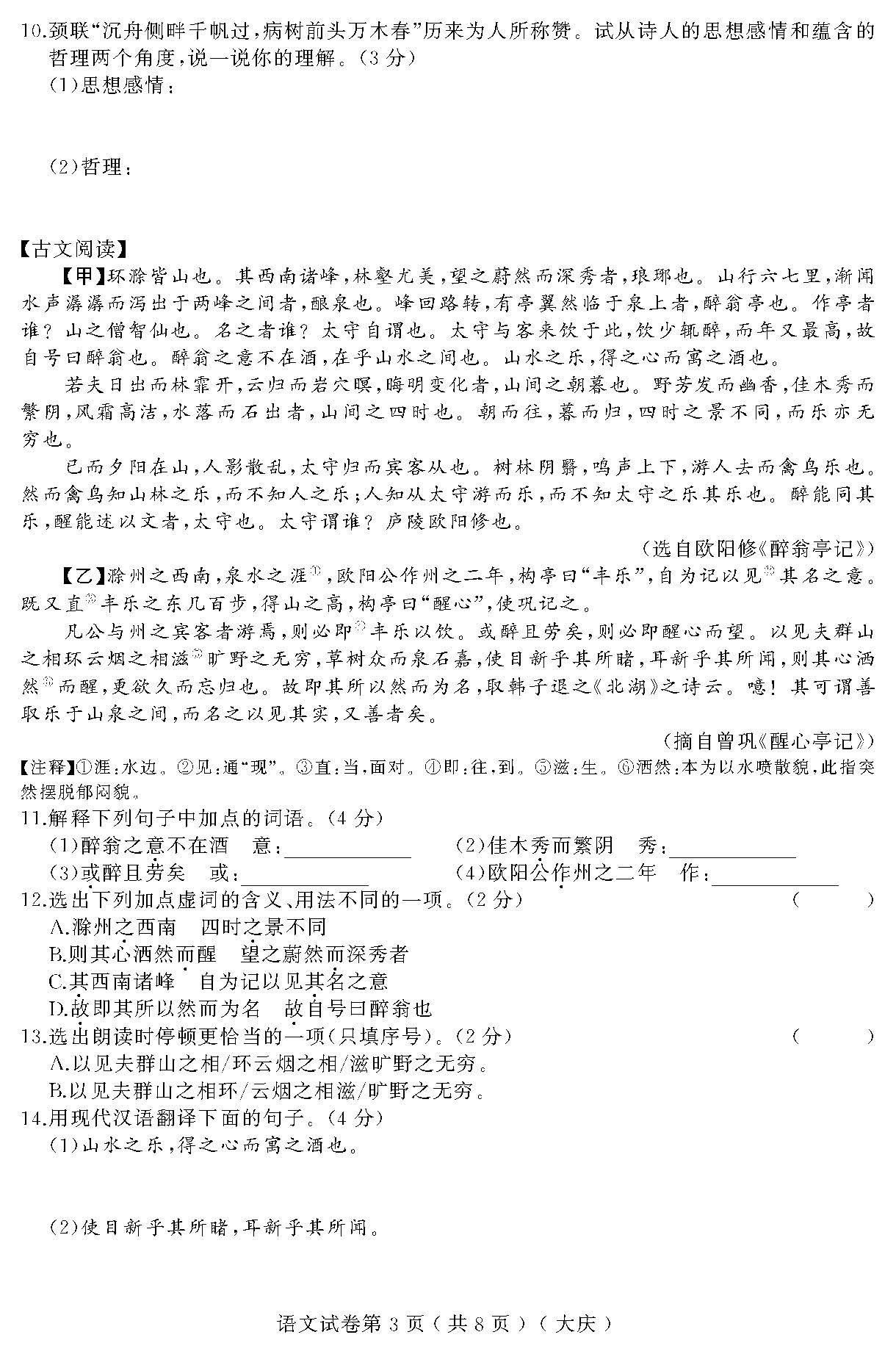 2018黑龙江大庆升学模拟大考卷(三)语文试题(图片版)(3)