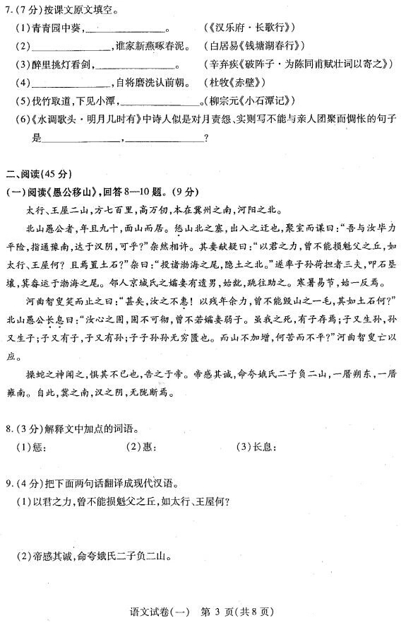 2018黑龙江哈尔滨南岗九年级中考一模语文试题(图片版)(3)