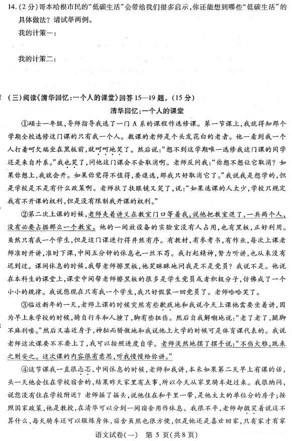 2018黑龙江哈尔滨南岗九年级中考一模语文试题(图片版)(5)