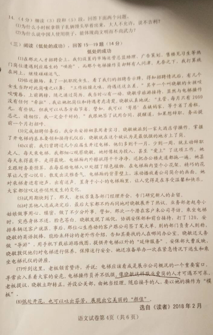 2018黑龙江哈尔滨松北九年级中考一模语文试题(图片版)(4)
