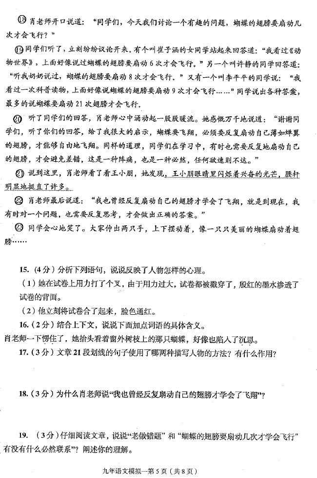2018黑龙江哈尔滨道里九年级一模语文试题(图片版)(5)