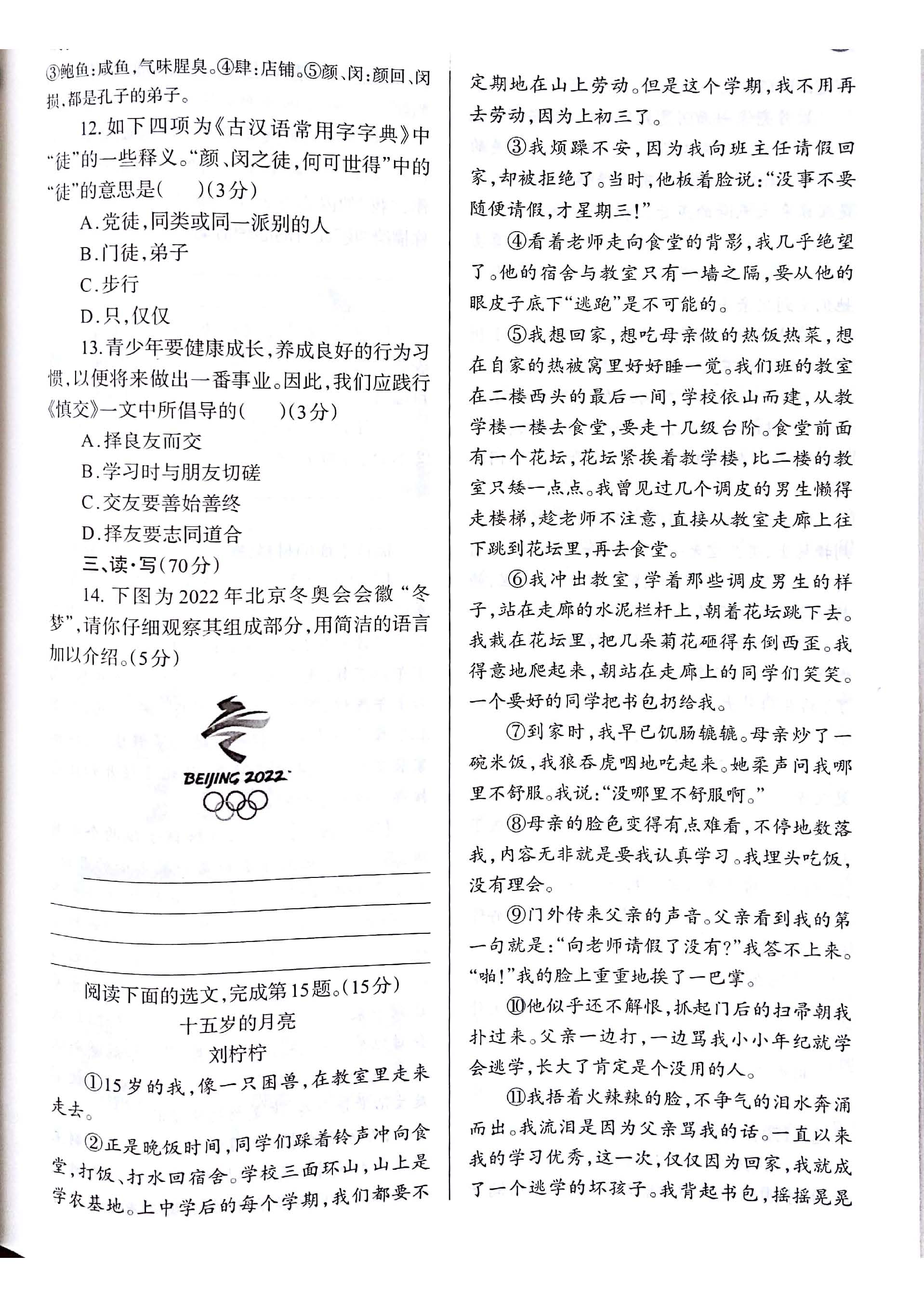 2018山西太原外语科技实验中学初三备战中考语文模拟预测题(图片版)(4)