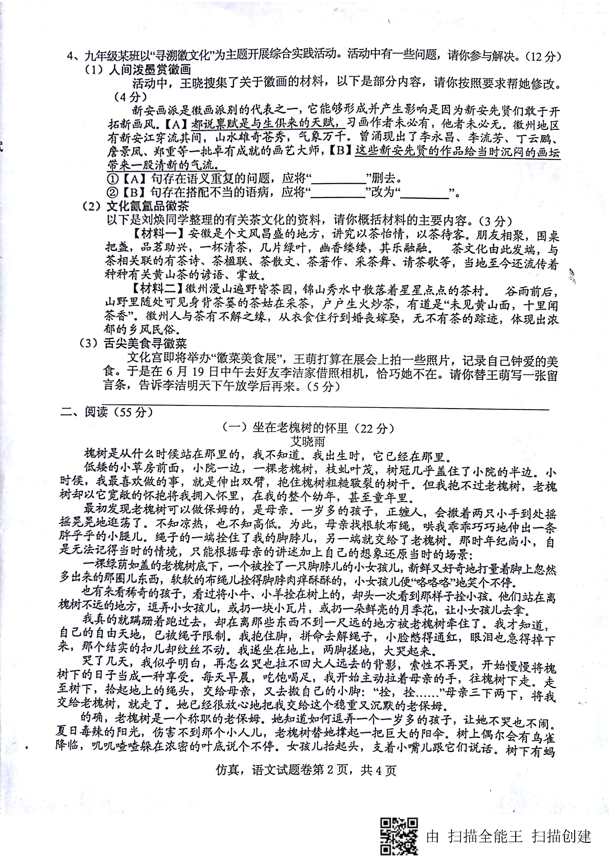 2018安徽省初中毕业学业考试仿真试题语文试卷(图片版)(2)