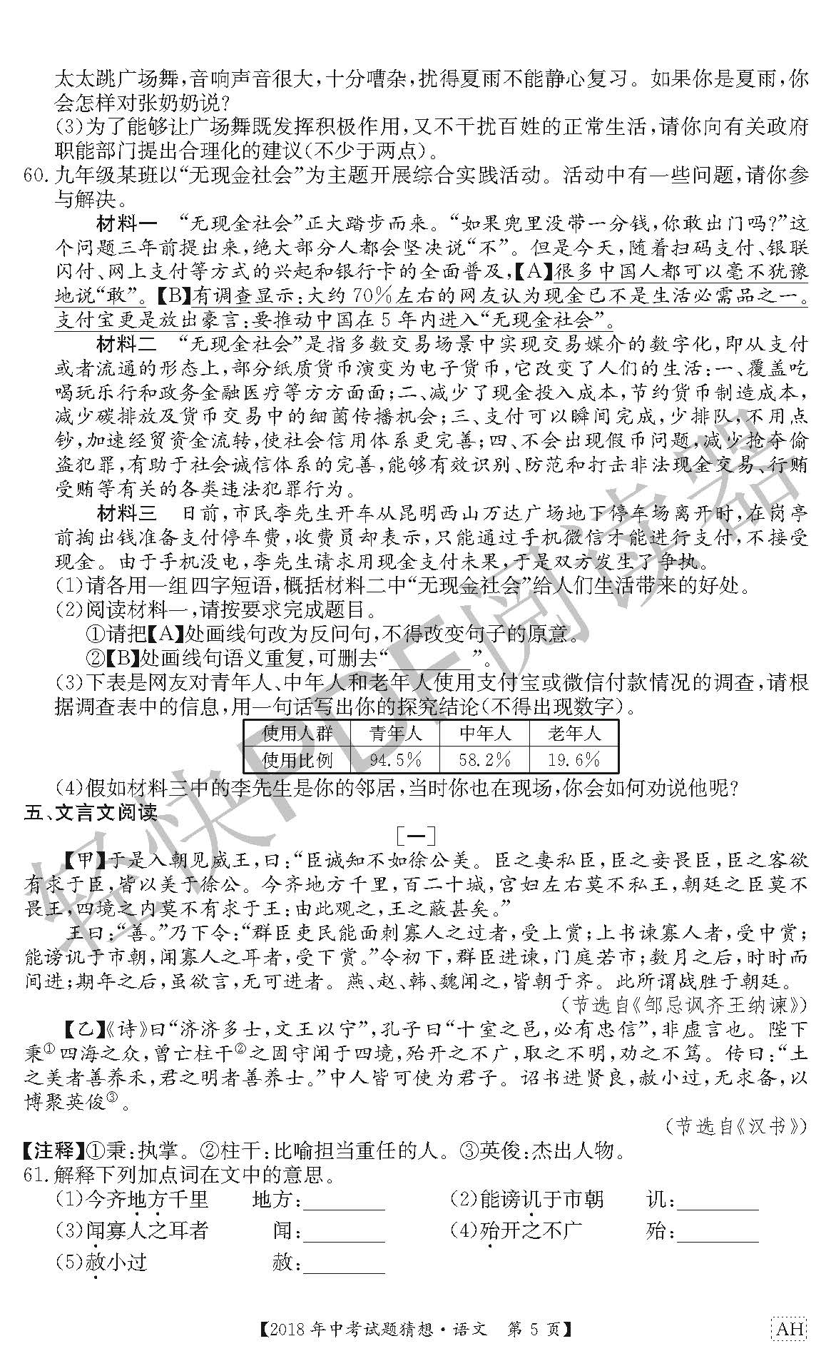 2018安徽省中考试题猜想语文试题(图片版)(3)