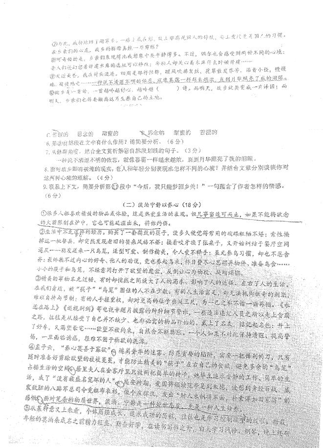 2018安徽合肥四十五中九年级三模语文试题(图片版)(3)