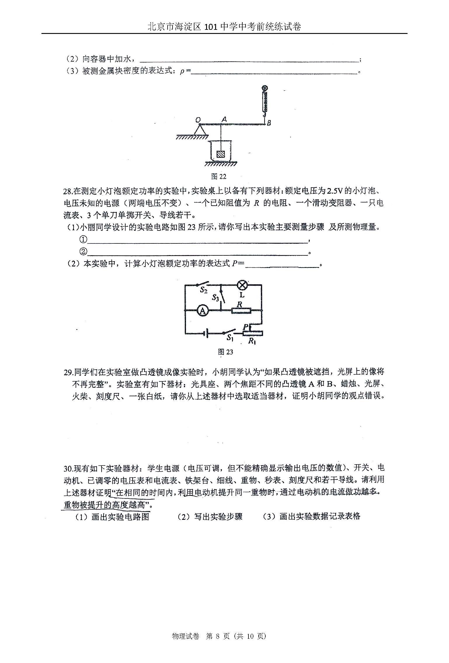 2018年北京101中学中考前物理统练试卷(图片版)(8)