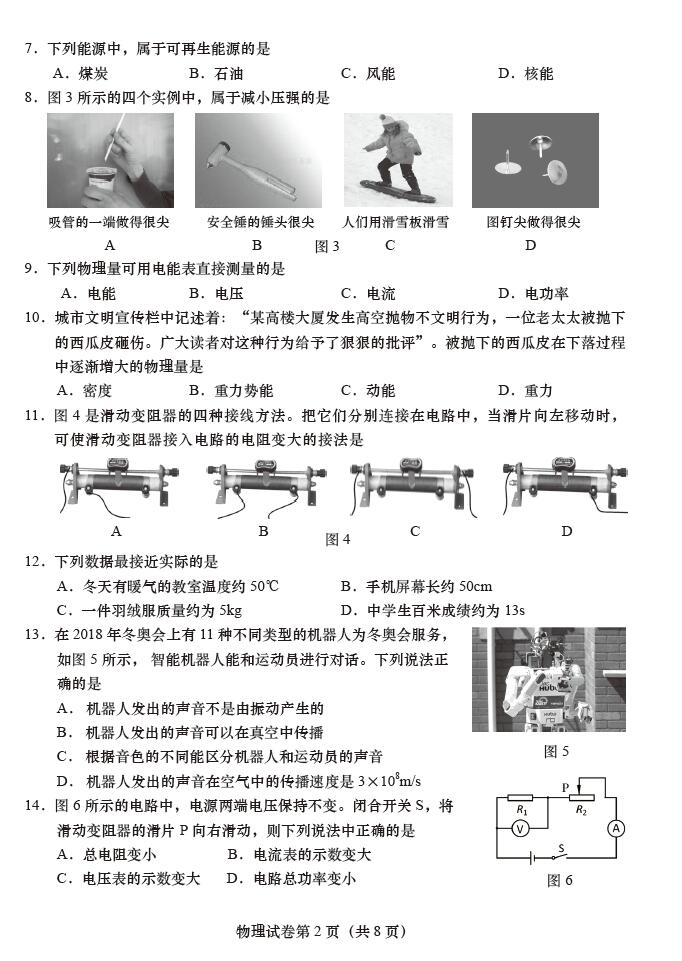2018北京燕山地区初中毕业暨一模物理试卷(图片版)(2)