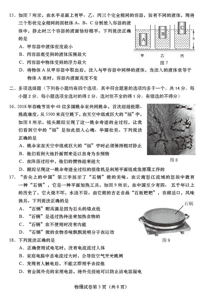 2018北京燕山地区初中毕业暨一模物理试卷(图片版)(3)