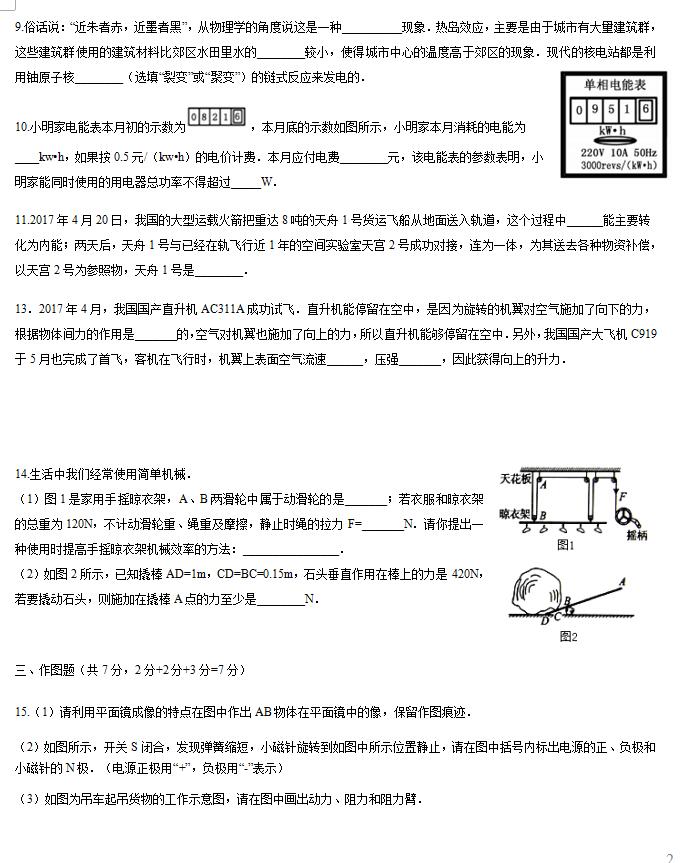 2018北京朝阳七十一中中考物理模拟试题(一)(图片版)(3)