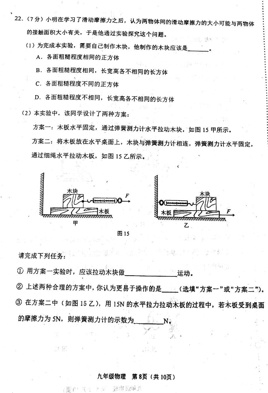 2018天津滨海新区初中物理二模试卷(图片版)(8)