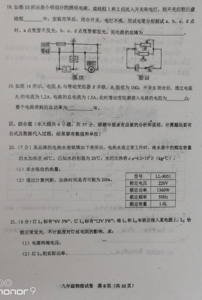 2018天津河东中考模拟考试物理试题(图片版)(6)