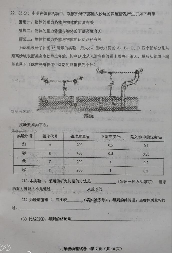 2018天津河东中考模拟考试物理试题(图片版)(7)