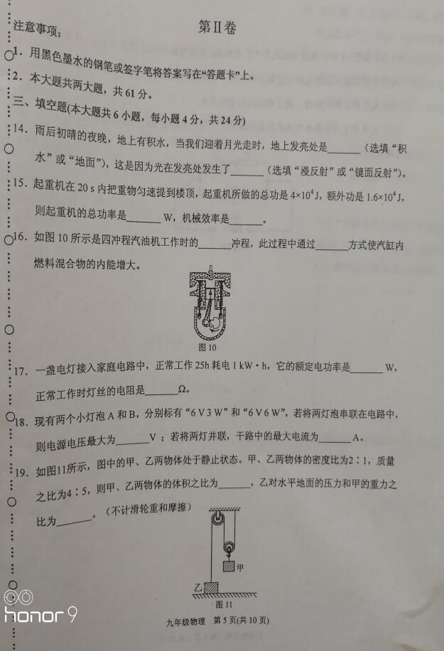 2018天津滨海新区中考模拟检测(一)物理试题(图片版)(5)