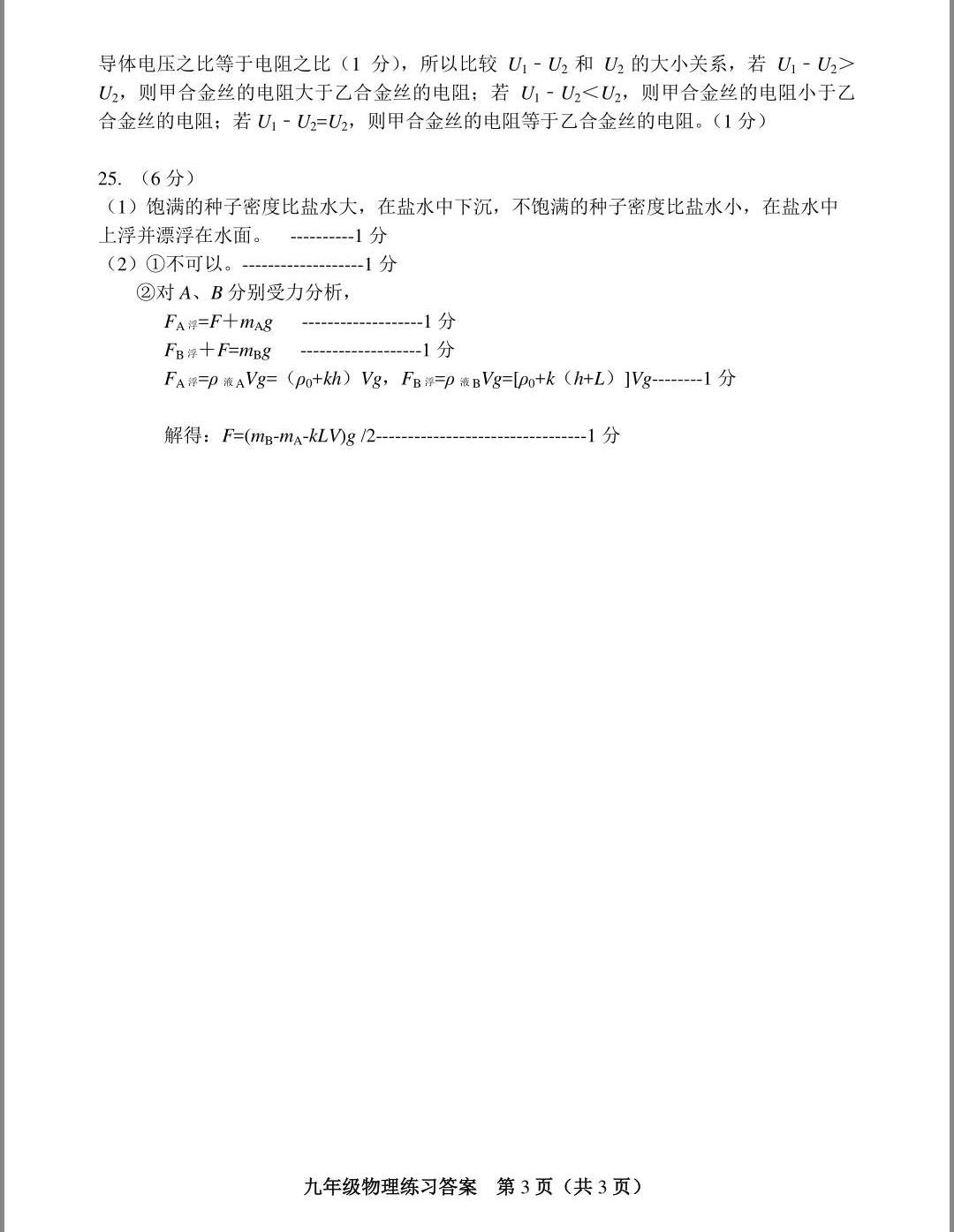2018天津初三物理模拟题汇总