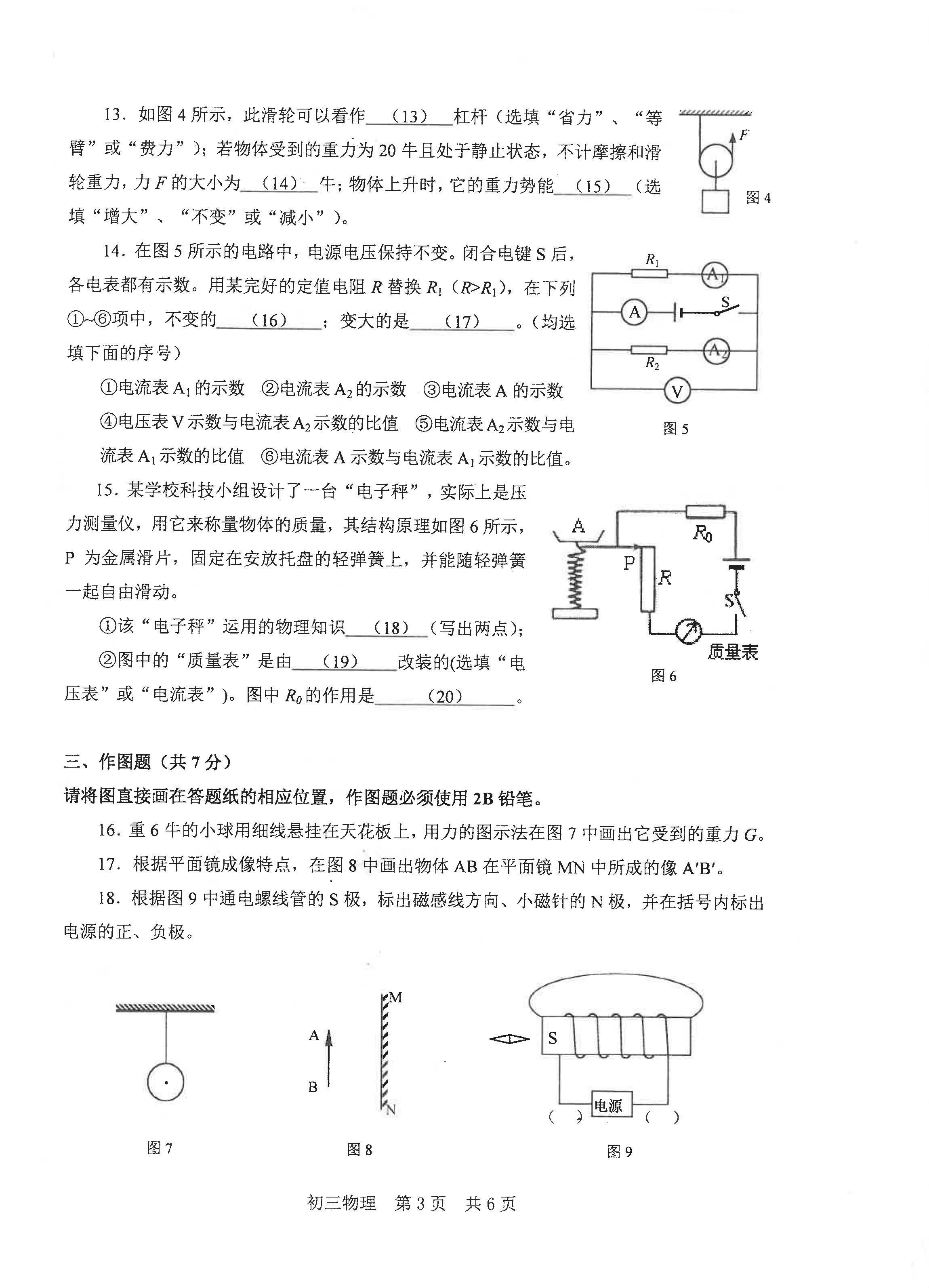 2018上海松江初中毕业生物理二模试题(图片版)(3)
