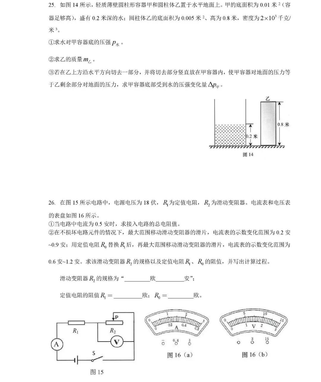 2018上海杨浦九年级二模物理试题(图片版)(5)