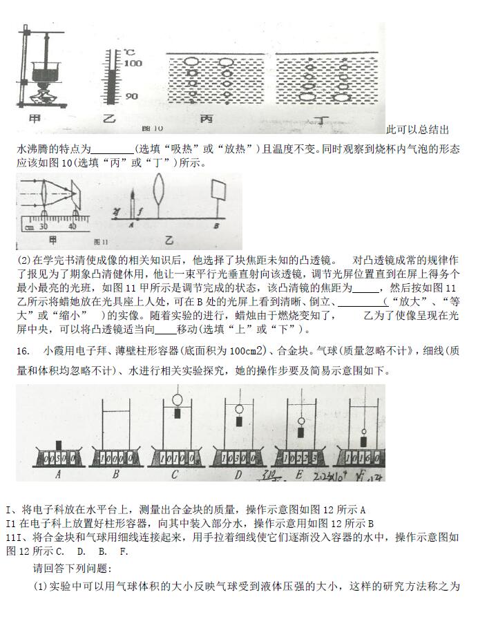 2018重庆开州西街中学适应性考试物理试卷(图片版)(4)