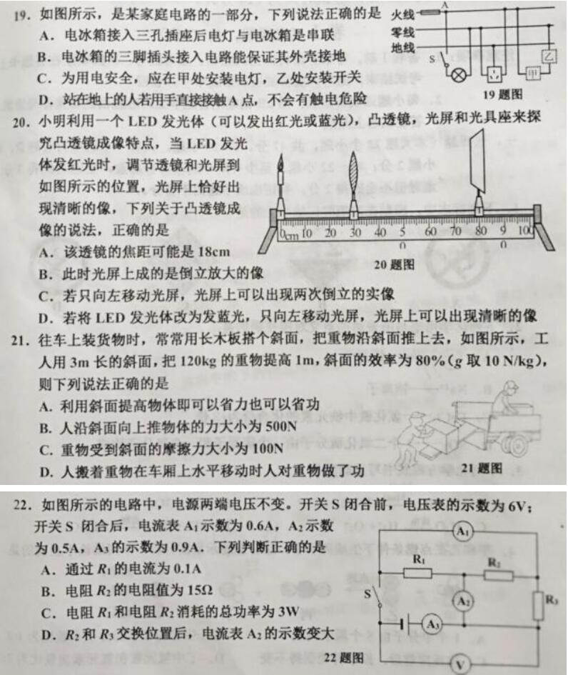 2018河北唐山路南九年级三模物理试题(图片版)(2)