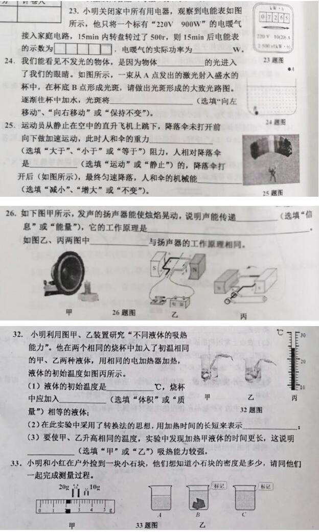 2018河北唐山路南九年级三模物理试题(图片版)(3)