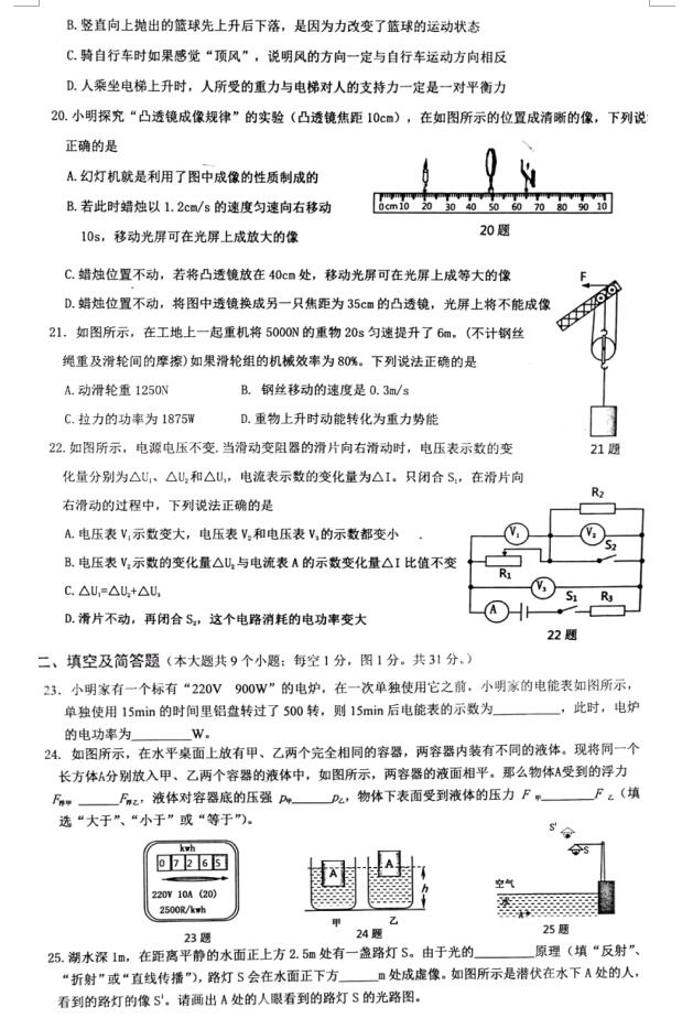 2018河北唐山开平中考物理模拟(二)(图片版)(2)