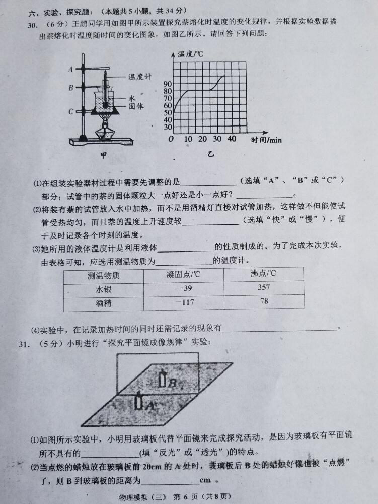 2018辽宁台安初中升学考试物理模拟试卷(三)(图片版)(6)