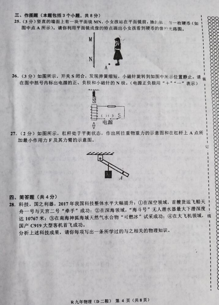 2018辽宁丹东初中升学考试物理模拟试卷(二)(图片版)(4)