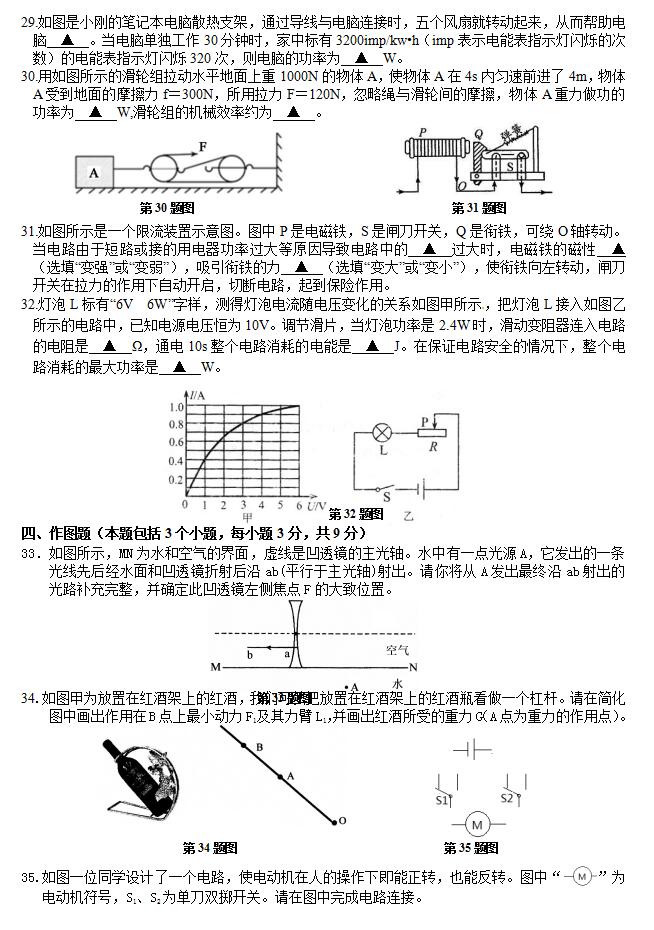 2018辽宁丹东十八中九年级二模物理试题(图片版)(3)