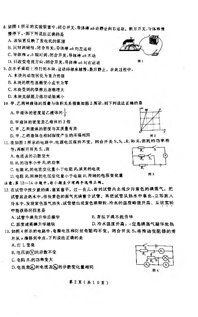 2018辽宁大连毕业生物理模拟考试(一)(图片版)(2)