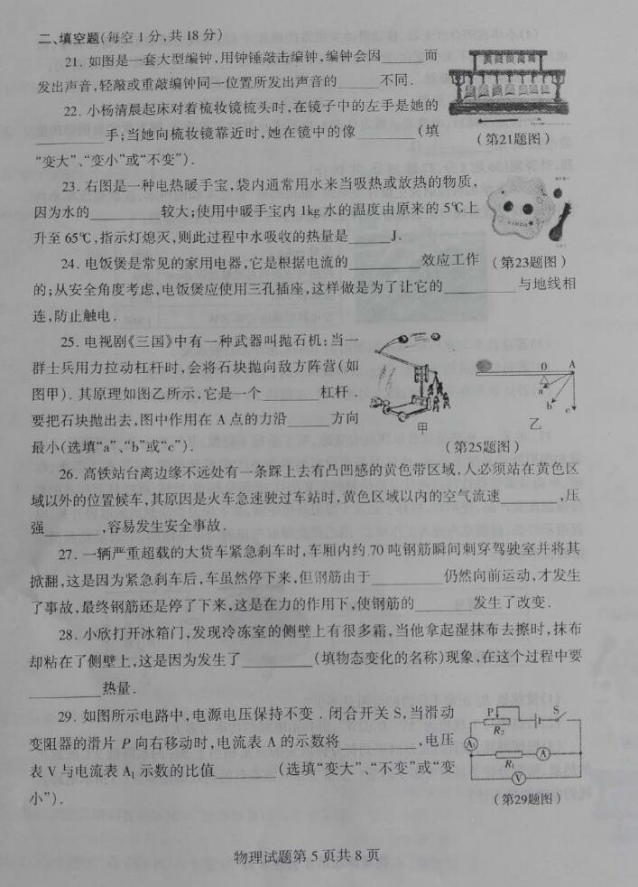 2018山东临沂费县九年级二模物理试题(图片版)(5)