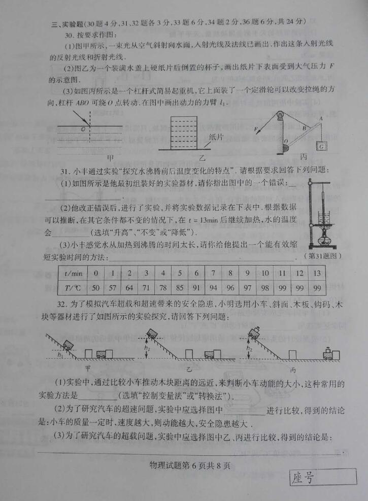 2018山东临沂费县九年级二模物理试题(图片版)(6)